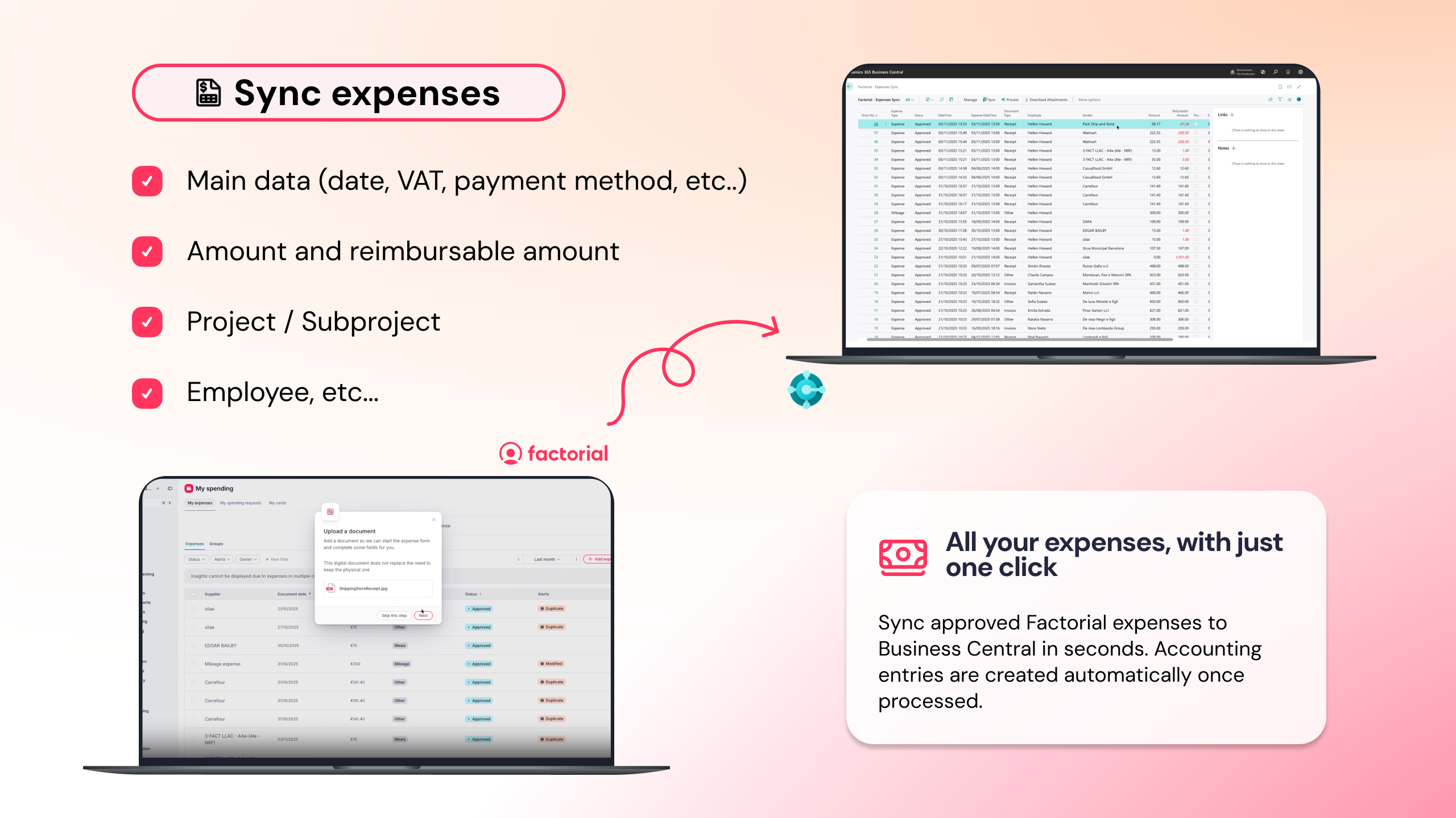 - Transfira facilmente despesas aprovadas para o Business Central para um melhor controlo financeiro.