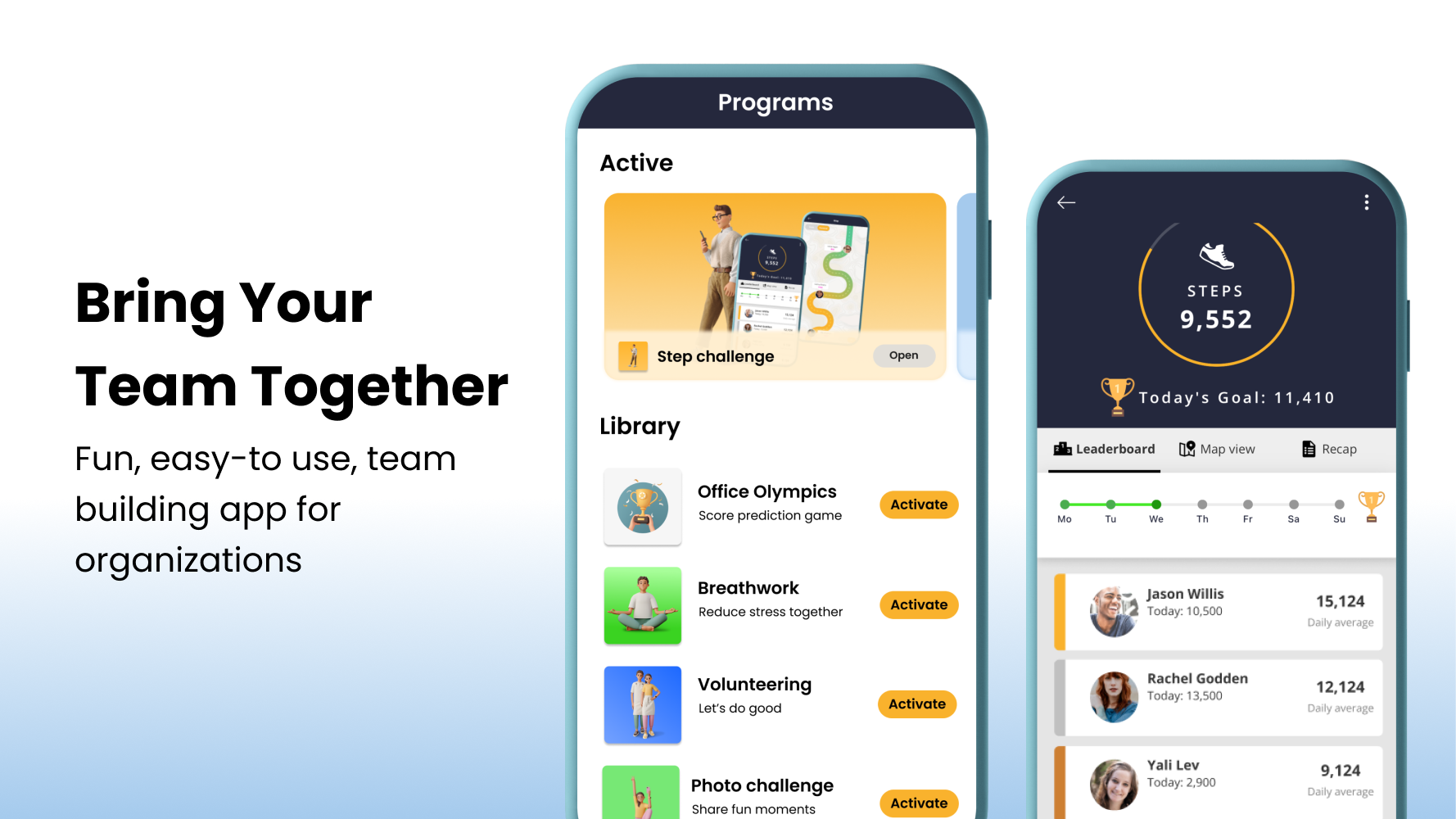 O Reaction Club é uma aplicação divertida e intuitiva de team building que promove o bem-estar, o envolvimento dos colaboradores e a cultura da empresa. Permite lançar desafios de bem-estar, atividades de equipa e eventos com um sistema motivador de pontos e recompensas.