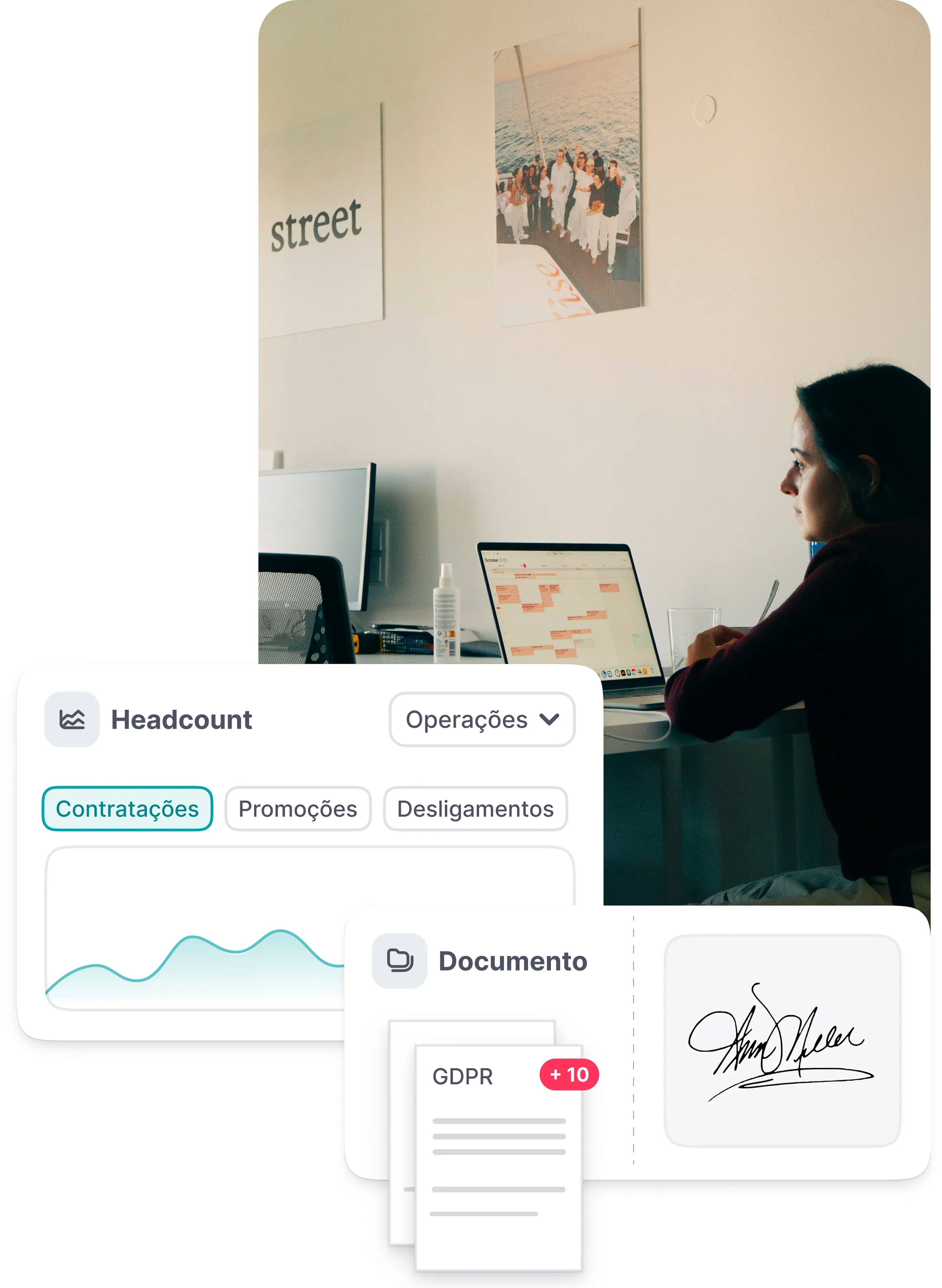 Melhoramos a experiência de integração ao centralizar documentos essenciais, contratos e recibos de vencimento, dando aos novos colaboradores acesso a tudo o que precisam desde o primeiro dia.