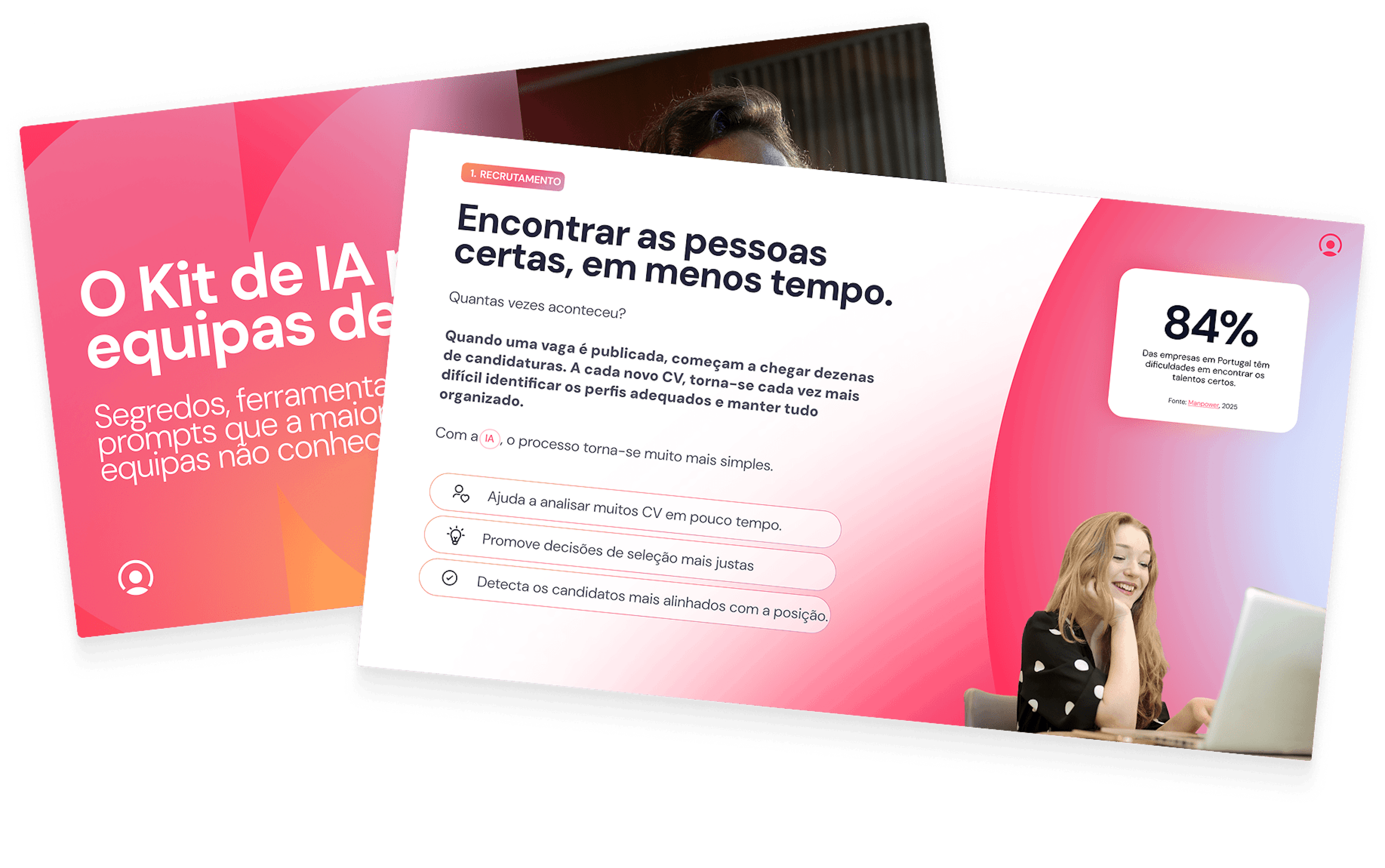 📘 Este kit vai ajudar a perceber, de forma concreta, como a IA pode melhorar o teu trabalho. Vai encontrar exemplos práticos e ferramentas úteis para cada fase, do recrutamento ao desenvolvimento.