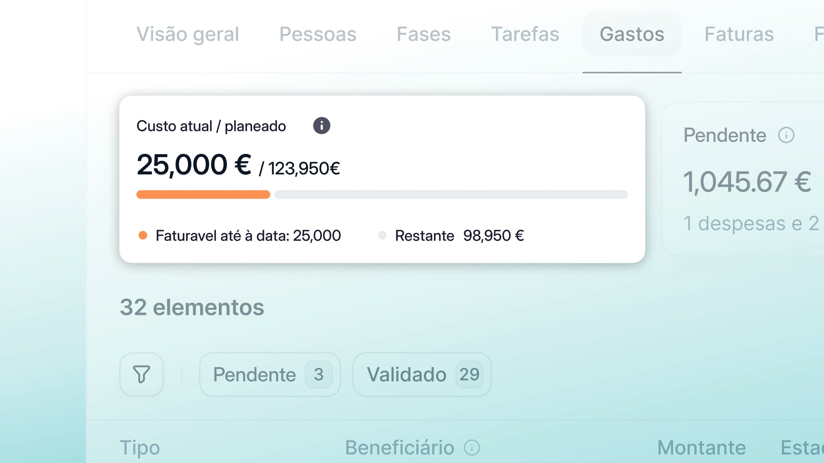 Vincule as despesas e os custos laborais para obter uma visão financeira única e fiável.