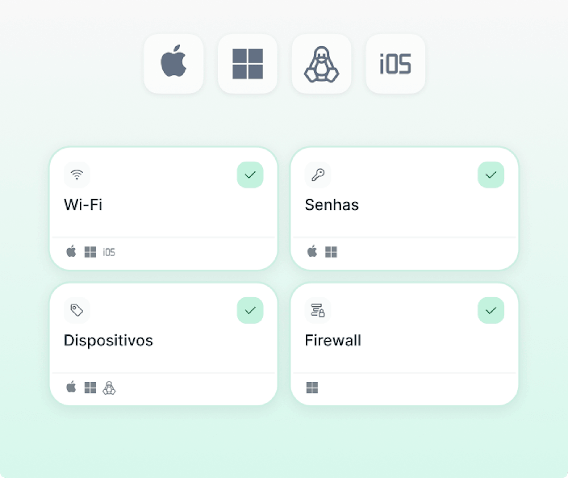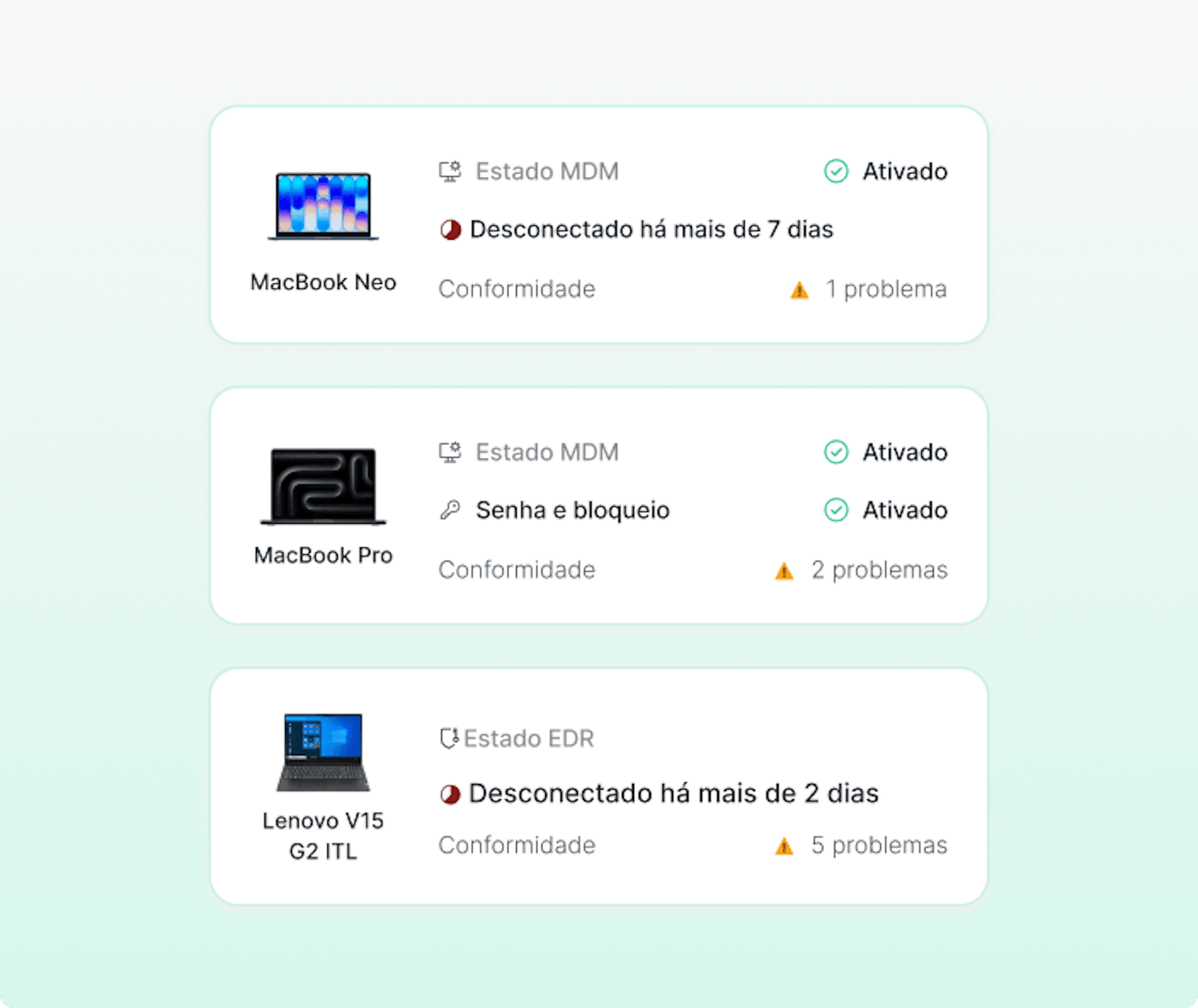 - Visibilidade total: inventário em tempo real de todos os dispositivos (Windows, Mac e Linux)